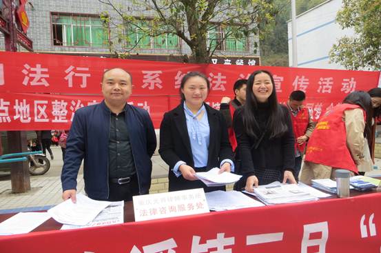 2018年3月28日上午,我所预备党员赵林刚律师、陈漫律师及政治协理员陈菲在黔江区司法局的组织下,与其他四家律师事务所到黔江金溪镇开展送法下乡维权宣传活动。